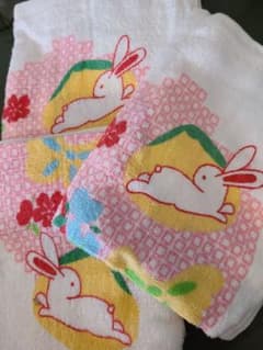 飛ぶ白うさぎ柄タオル 3本セット 干支ウサギ 華やかな紐結び お正月