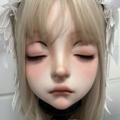 【新品未使用】着ぐるみマスク ヘッドシェル 美少女面 閉じ目 アニメガオ レジン製 ハンドペイント完成品