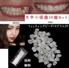 ●メルカリ便●仮歯50個セット & 10グラ厶 フィッテングビーズ 義歯 マウス