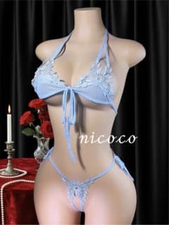 225 水色 セクシーランジェリー コスプレ ビキニ レースブラ 紐ショーツ