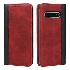 耐衝撃 サムスン SC-03L SoftBank docomo ドコモ スマホケース SCV41 au スタンド機能 カード収納 カバー 手帳型 ケース ケース フェイクレザー-レッド+ブラック ギャラクシーs10 S10 Galaxy 対応 Havaya