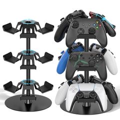 コントローラー スタンド 3層対称設計 9つまで縦に収納 ゲームコントローラー 収納ラック 卓上 ヘッドホンスタンド 360度回転式 ヘッドセット ホルダー 組み立て簡単 頑丈で安定 省スペース 整理整頓 幅広くコントローラーに対応 ブラック