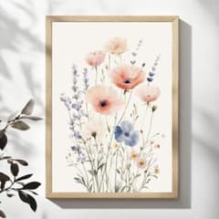 A4 やさしい野花の水彩画|淡色フラワーアート 北欧ナチュラルインテリア