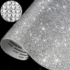 [12×20㎝]2枚入り デコシール シール 自己粘着ラインストーンシール 修正工芸品 電話 衣類 車 ラインストーン スマホ DIY スワロフスキー シール ORBIDO クリスタル キラキラシール 熱接着タイプ 銀色