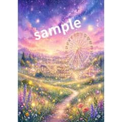 1点限り 幻想の遊園地 光が導く癒しの風景画A4 デジタルアート水彩画風ポスター