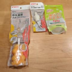 Pigeon 哺乳瓶ブラシ2個、洗剤付きスポンジまとめ売り