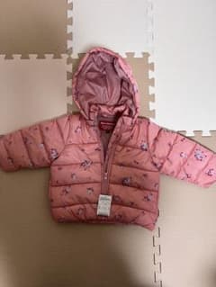 【即日発送・送料無料】Moujonjon ピンク花柄ダウンコート 90サイズ