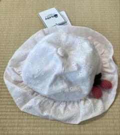 《新品未使用》UVカット フリル付きベビー帽子 44-46cm