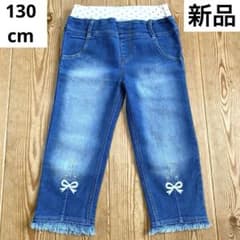 ❤️新品❤️リボン刺繍 裾フリンジ ストレッチデニムパンツ❤️130cm❤️ポケット付き