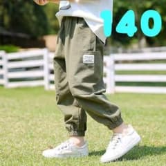 140cm カーキ 子供服 ボトムス 長ズボン ゆったり ワークパンツ 通学