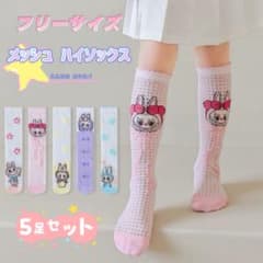 ✰新品✰キッズ メッシュ ハイソックス 高品質綿 フリーサイズLB 5足セット