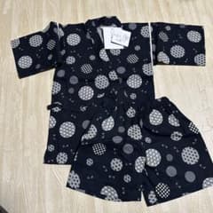 黒色 円形模様 甚平 100cm~