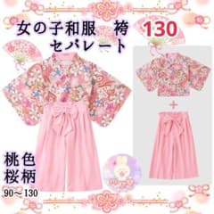 卒園式 雛祭り ひな祭り 袴 130 女の子 和服 ピンク 桜柄 上下セット F