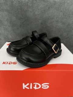 レザー風シューズ ブラック スポーティな厚底 キッズ用ローファー