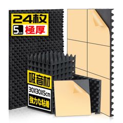 30x30x5cm AUSLET 24枚 自己粘着吸音材 極厚防音材 粘着剤付き 30x30x5cm 自粘防音シート 壁 室 吸音パネル 遮音シート 防音パネル 高密度吸音スポンジ 室内装飾 楽器 消音 吸音対策 黒(エッグ形)