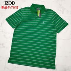 【新品タグ付き】IZOD ゴルフ 半袖ポロシャツ ボーダー柄 グリーン Mサイズ