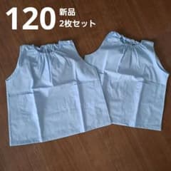 幼稚園保育園ノースリーブスモック120サイズポケット付き水色ブルー夏用