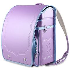 【新品】ランドセル 女の子 小学生通学鞄 A4フラットファイル対応 高級合皮 大容量 撥水加工 パール生地 刺繍 ワンタッチロック 【透明ランドセルカバー付】 6 (Violet)