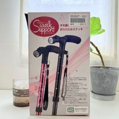 ZB@301-3B|LEDライト付き 4点自立ステッキ|折りたたみ杖|5段階調節|ブラック| 杖 介護用品