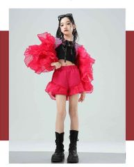 ダンス衣装 キッズ 子供用 ヒップホップ セットアップ ショット丈 トップス 黒 ローズピンク パンツ カッコイイ 女の子 ジャズ ダンス 衣装 ジュニア 発表会 派手 目立つ ダンス服 HIPHOP 大きいサイズ 舞台 ステージ