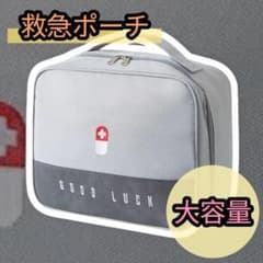 救急バッグ グレー 大容量 防水 ファーストエイドポーチ 家庭用 防災 薬収納
