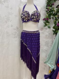 新品 パープルハート オリエンタル衣装 オーダーメイドベリーダンス衣装 3点