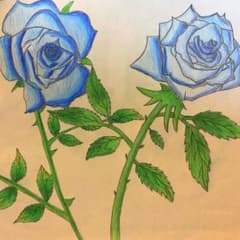 青色のバラ 手描き 絵画