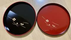 漆器 盆 2枚セット 黒と赤 花模様 夫婦盆