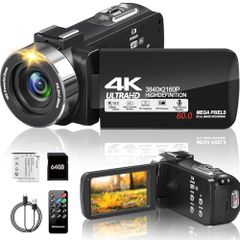 ビデオカメラ4K動画8000万画像数YouTubeカメラ ウェブカメラ 18倍デジタルズーム270度回転 3.0インチ IR赤外線暗視Vlogカメラ 一時停止機能タイムラプス&スローモーション検知 LEDフィルライトリモコン付き 予備バッテリー64GBSpms