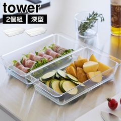 山崎実業 電子レンジ対応連結できる洗いやすい下ごしらえ調理トレー 連結 2個組 タワー tower 10337 クリア 公式 バット 食洗機対応 深型 下ごしらえ トレー 2個セット 電子レンジ対応 色移りしにくい 耐熱