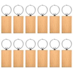 木製 キーホルダー 長方形 木製 キーホルダー 無地 12 個セット クラフト キーホルダー 彫刻 ペイント レタリング 手作り DIY 番号札 ペットタグ キーホルダー作成用品 飾り物 工芸品 手芸材料 0