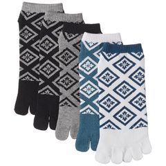 【新品】 [癒足] (イヤシ) 紳士ウォーキング&スポーツ クッション底カラーベース ☆柄5本指ハーフソックス 3足セット 1