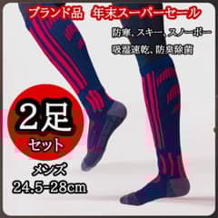 NewTouken スキースノーボード ソックス 靴下D 2足セット男 黒/赤