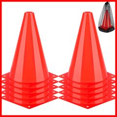 BiAnYC 10本セット 18cm マーカーコーン 赤カラーコーン ミニミニコーンサッカー コーン 三角コーン ミニサッカー 野球 テニス フットサル 練習コーンボールスポーツ 団体競技や部活 陸上競技 運動会 スポーツコーン収納ポーチ付き