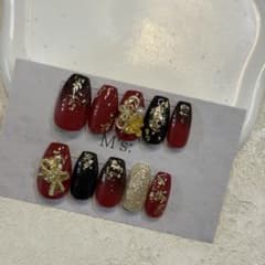 【現品/即発送】成人式ネイル 振袖 和柄 前撮り 赤黒金 ネイルチップ 和装