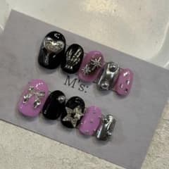【現品14358】y2kネイル ブラックネイル シルバー ピンク 個性派ネイル