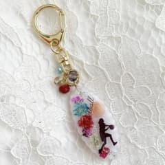 【3816】バスケ キーホルダー カラフルなドライフラワー入り バスケットボール