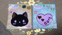 リバーシブルスパンコールワッペン 猫とハート柄2点セット