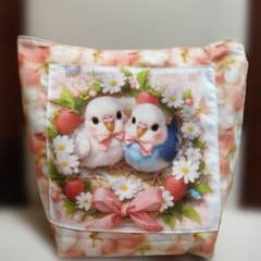 ファスナー付きドリンクホルダー&前&サイドポケット付きミニトートバッグ北欧風花柄
