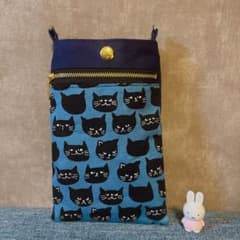 2way 猫柄 スマホショルダー ポシェット インバッグ ブルー ねこ 猫