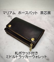 マリアム ホースバット 茶芯黒 札ポケット付きミドルトラッカーウォレット