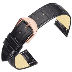 時計バンドベルト18mm 20mm 22mm カーフレザーメンズ レディース全3色交換ベルト 調整工具とバネ棒付(20mm黒+ローズゴールドバックル)