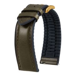 [BINLUN] 革時計ベルト クイックリリース オイルワックスレザー 腕時計バンド 内側シリコン製 通気性 ウォッチバンド 交換ベルト 男女兼用 20mm(グリーン/ローズゴールド バックル)