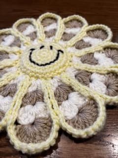 スマイルフラワーマルチマットハンドメイド韓国インテリア雑貨花モチーフ柄ニコアンド