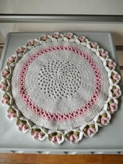 円形編み物 テーブルセンター 花モチーフ