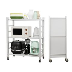 新品 折り畳みラック3段 収納ラック レンジ台 キッチンラック 360°回転式キャスター付き 移動便利 折りたたみ キッチン収納ラック コンパクト 多機能 大容量 ストッパー付き 組み立て簡単 炭素鋼製 丈夫で耐久性がある 高耐荷重 倉庫/会社/家庭/業務用