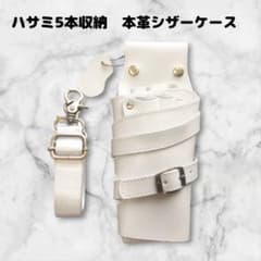 本革 ハサミ5本収納 シザーケース 美容師 理容師 ベルト巻き 白