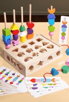 ひも通し 絵合わせ バランス パズル 木製 知育玩具 モンテッソーリ