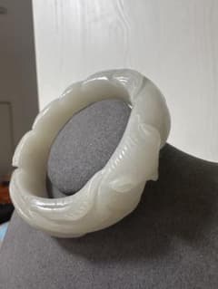春節祭 九尾狐バングル シャー太白バングル 彫刻天然石バングル