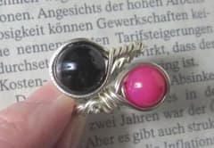 モリオン&ピンクアゲートTwinリング☆指輪GOLDハンドメイド